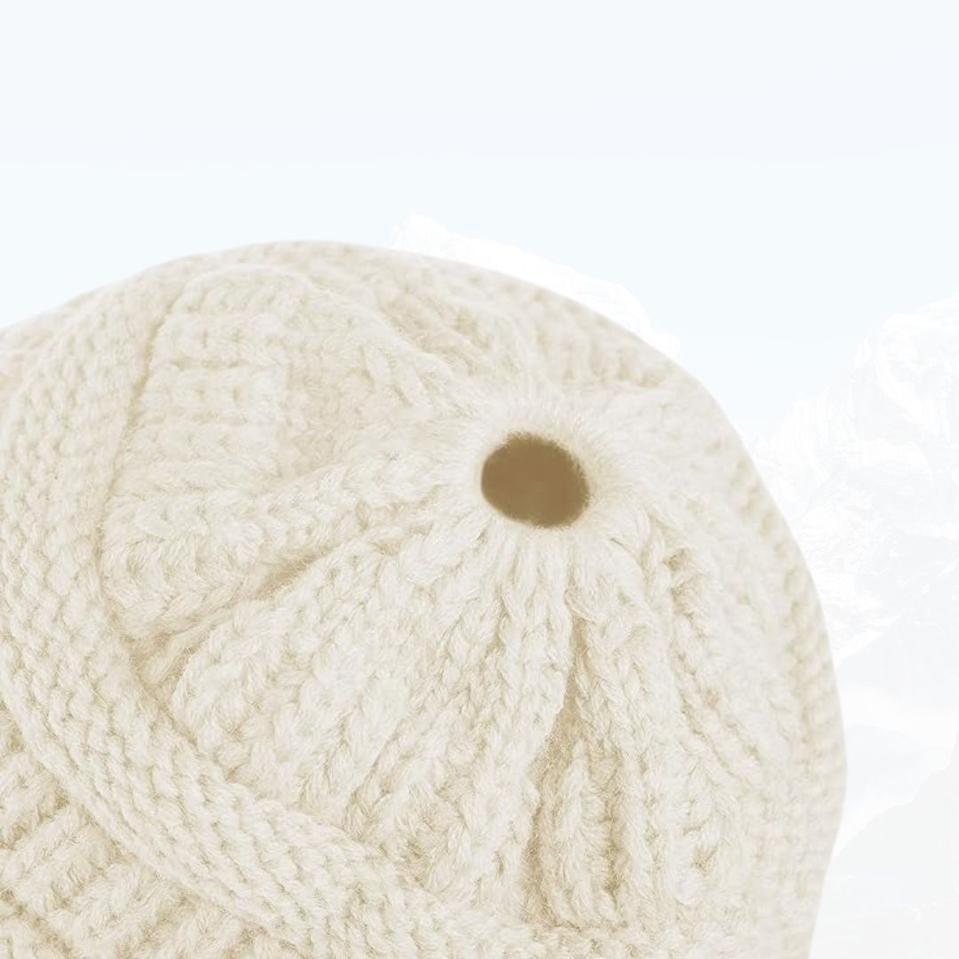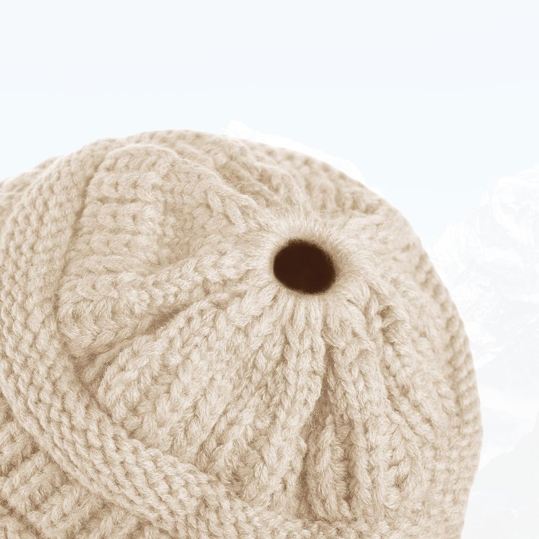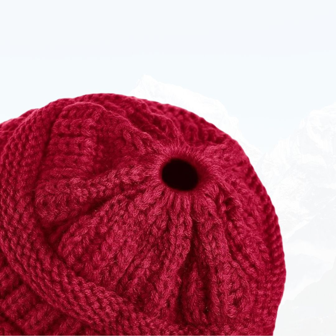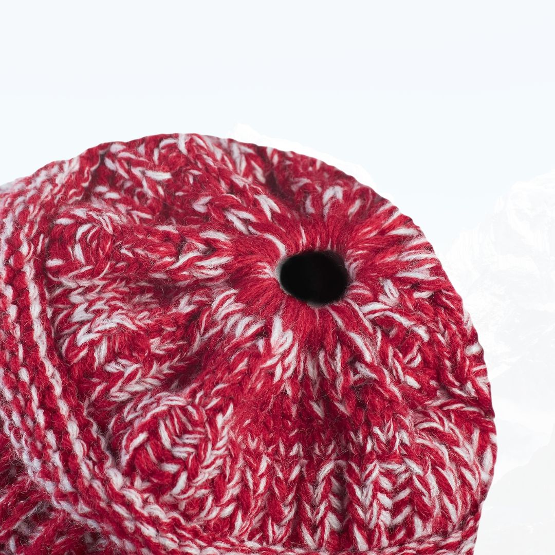 Diese Gipfelfreund® Mütze wurde mit einem praktischen Zopfloch entworfen, damit du deinen Pferdeschwanz oder Dutt bequem tragen kannst, ohne dass die Mütze verrutscht.