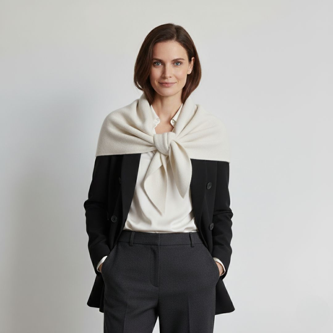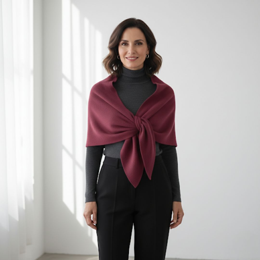 Der Woll-Mix Poncho bietet weiche, atmungsaktive Wärme vom ersten Tragen an – hochwertig, stilvoll und zeitlos.